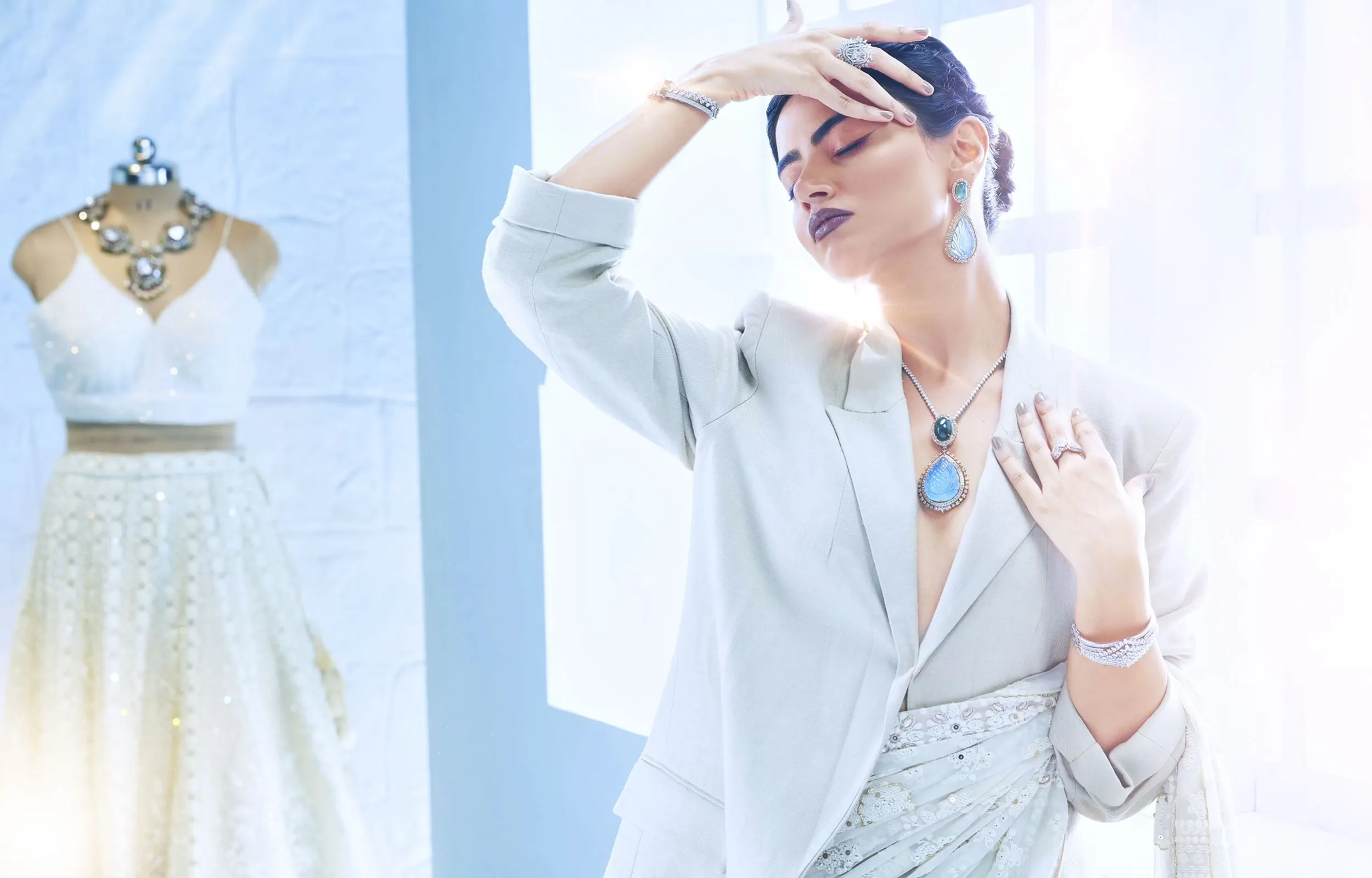 A luxurious jewellery brand advertising campaign for premium jeweller SR Jewellers, this high-end shoot is a cinematic celebration of brilliance and elegance. Completely conceptualized, creatively directed, and executed by our team, the campaign was shot in our green matte and white cyclorama studio, focusing on diamond jewellery paired with couture styling. This creative concept-based brand promotional film and photoshoot was designed for expansive platforms-ranging from print editorials and fashion magazines to digital ad films and hoardings. The final visuals reflect timeless sophistication, bold styling, and modern glam, establishing the brand as a symbol of luxury and creativity.